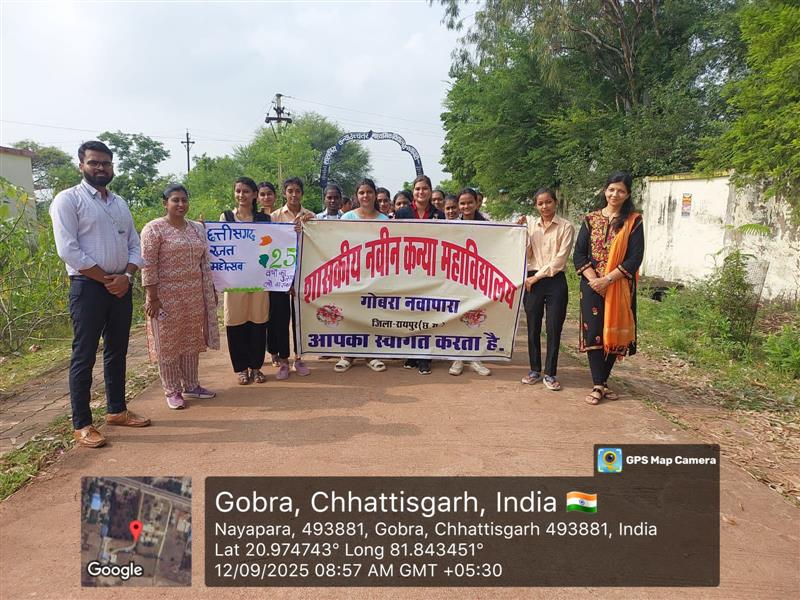 शासकीय नवीन कन्या महाविद्यालय, गोबरा नवापारा, रायपुर में दिनांक 10 से 12 सितंबर तक ‘रजत जयंती’ समारोह हर्षोल्लास के साथ मनाया गया । छत्तीसगढ़ राज्य गठन के 25 वर्ष पूर्ण होने के उपलक्ष्य में तीन दिवसीय कार्यक्रम का आयोजन हुआ । प्रथम दिवस दिनांक 10.09.2025 को संगोष्ठी का आयोजन किया गया, जिसमें मुख्य वक्ता के रूप में सहायक प्राध्यापक एवं इतिहासविद डॉ. ऋषिराज पांडे का व्याख्यान हुआ । मुख्य अतिथि के रूप में नगर पालिका परिषद, गोबरा नवापारा, अध्यक्ष श्रीमती ओमकुमारी संजय साहू , विशिष्ट अतिथि, महाविद्यालय की जनभागीदारी समिति अध्यक्ष श्रीमती लोमेश्वरी साहू एवं जनभागीदारी के सदस्यगण उपस्थित रहे ।