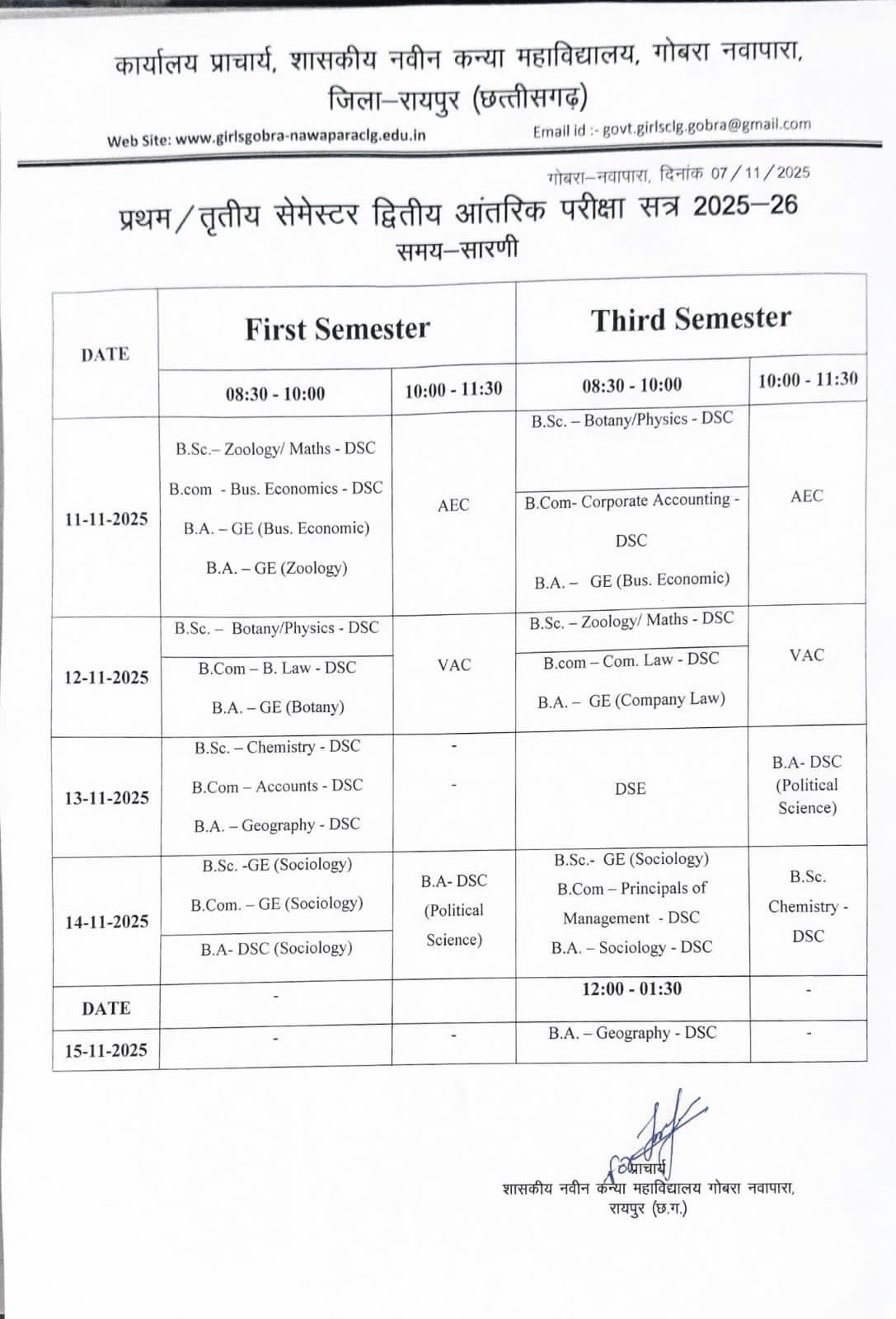 Government Naveen Girls College GobraNawpara wasestablished in the          year 2021.The college is affiliated to the state university Pt. Ravishankar ShulkaUniversity Raipur (C.G.) The college envisions to educate and empower the ruralgirls not only by providing quality education but also by facilitating themwith employability skills and ensuring their holistic development. The collegehas been working towards fulfillment of diverse expectations of young girls inthe field of higher education since its beginning. Teaching is no longer justtransmitting knowledge but it is more of significantly transforming youngminds. Our aim is the holistic development of students through quality educationand enhancing employability by enhancing students with essential skills and knowledge,so that they can efficiently face all challenges in their career and life infuture. With much pride I would like to appreciate our dedicated andresponsible faculty members who are constantly mentoring and motivatingstudents to attain self-confidence and preparing them to succeed in rapidlychanging world. We are confident that the students ofgirl’s college will continue to grow, prosper, reach greater heights and willmake a significant impact on society.