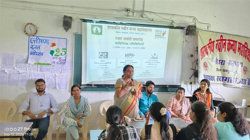 शासकीय नवीन कन्या महाविद्यालय, गोबरा नवापारा, रायपुर में दिनांक 10 से 12 सितंबर तक ‘रजत जयंती’ समारोह हर्षोल्लास के साथ मनाया गया । छत्तीसगढ़ राज्य गठन के 25 वर्ष पूर्ण होने के उपलक्ष्य में तीन दिवसीय कार्यक्रम का आयोजन हुआ । प्रथम दिवस दिनांक 10.09.2025 को संगोष्ठी का आयोजन किया गया, जिसमें मुख्य वक्ता के रूप में सहायक प्राध्यापक एवं इतिहासविद डॉ. ऋषिराज पांडे का व्याख्यान हुआ । मुख्य अतिथि के रूप में नगर पालिका परिषद, गोबरा नवापारा, अध्यक्ष श्रीमती ओमकुमारी संजय साहू , विशिष्ट अतिथि, महाविद्यालय की जनभागीदारी समिति अध्यक्ष श्रीमती लोमेश्वरी साहू एवं जनभागीदारी के सदस्यगण उपस्थित रहे ।